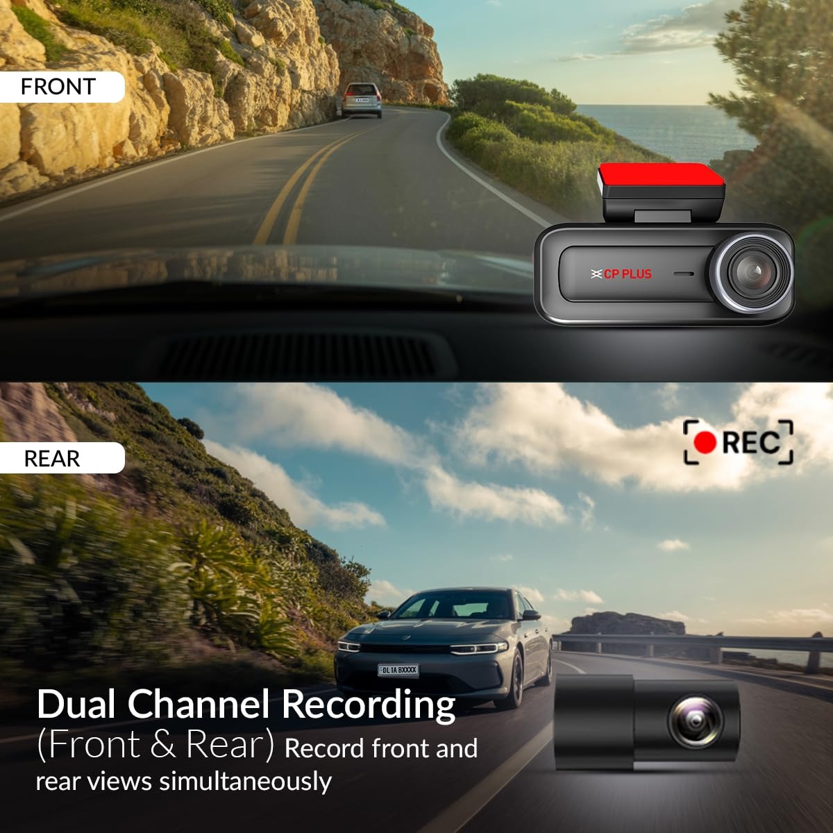 - Full HD 1080p Front & Rear Dashcam for Car – The CP PLUS CP-H27B dashcam for car records high-quality 1920×1080p video from both front and rear dash cameras at 25fps, providing total visual coverage of the road and rear traffic for clear, reliable evidence.
