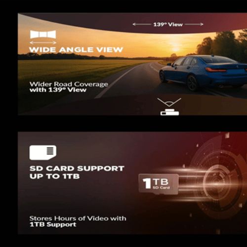 • SD Card Support up to 1TB for Long-Duration Storage – This dashcam for cars supports high-capacity SD cards, letting you store hours of high-resolution video—ideal for fleet monitoring, taxis, or personal .