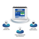 Next generation tall tubular battery with better charge acceptance and long Back up Long cycles (1500 @80% DOD, 5000 @ 20% DOD), ensuring design life Longer life without discharge with self-discharge rate of 3% per month STC. Efficient battery with Higher AH efficiency > 90%, and WH efficiency > 80% Low maintenance with a topping frequency of 8-10 months, low maintenance with level indicators Manufactured with high corrosion resistant and robust spine technology using the advanced and state-of-the-art HADI high pressure (at 100 bar) spine casting machines, which ensure a super fine grain structure, for strength, long life and highest reliability Designed with thicker positive plates and 20% more electrolyte to withstand power outage