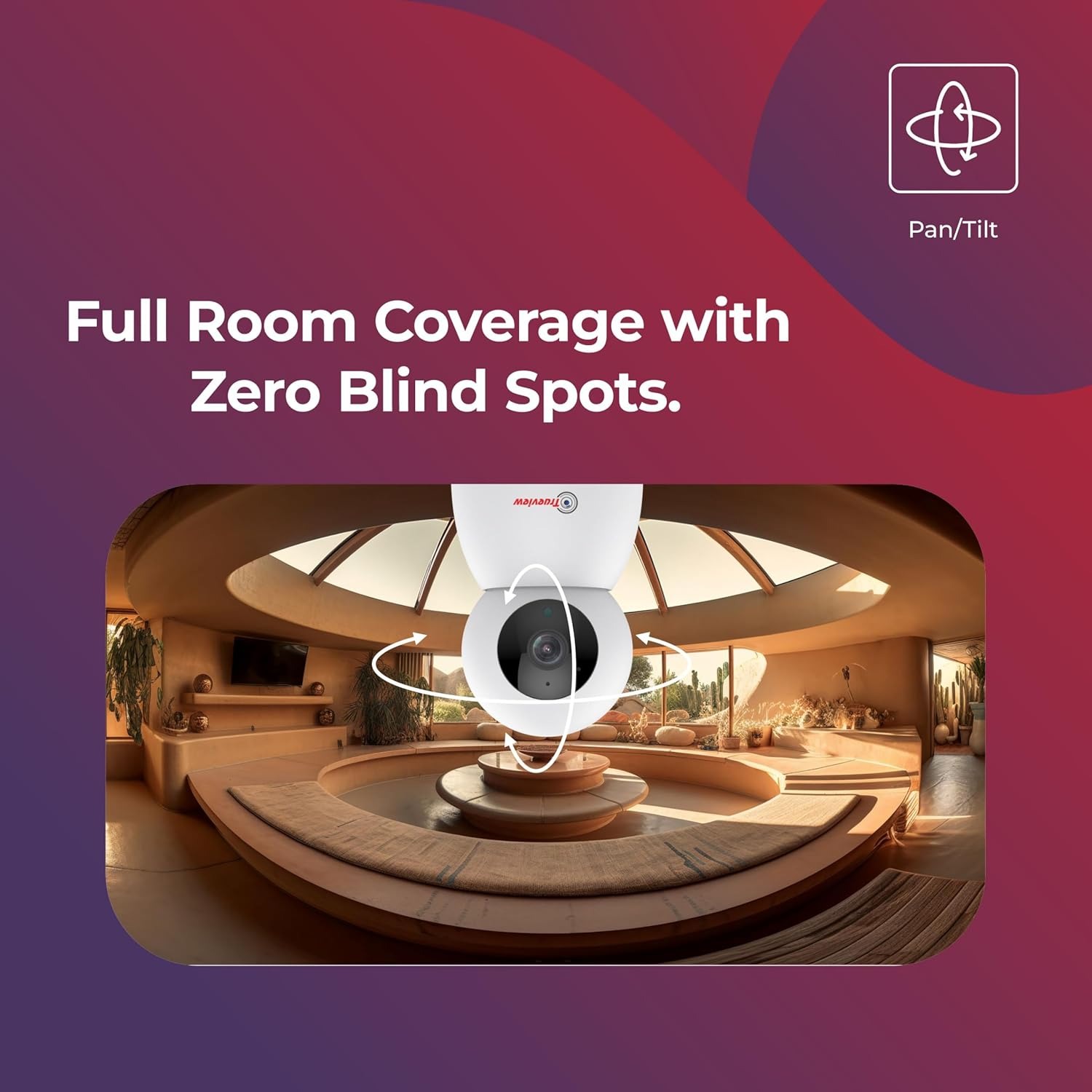 Trueview 3MP Smart CCTV Wi-fi Home Security Camera, 360° View, 2 Way Talk, Cloud Monitor, Detect, Supports SD Card Up to 256 GB, Night Vision, Alexa & Ok Google